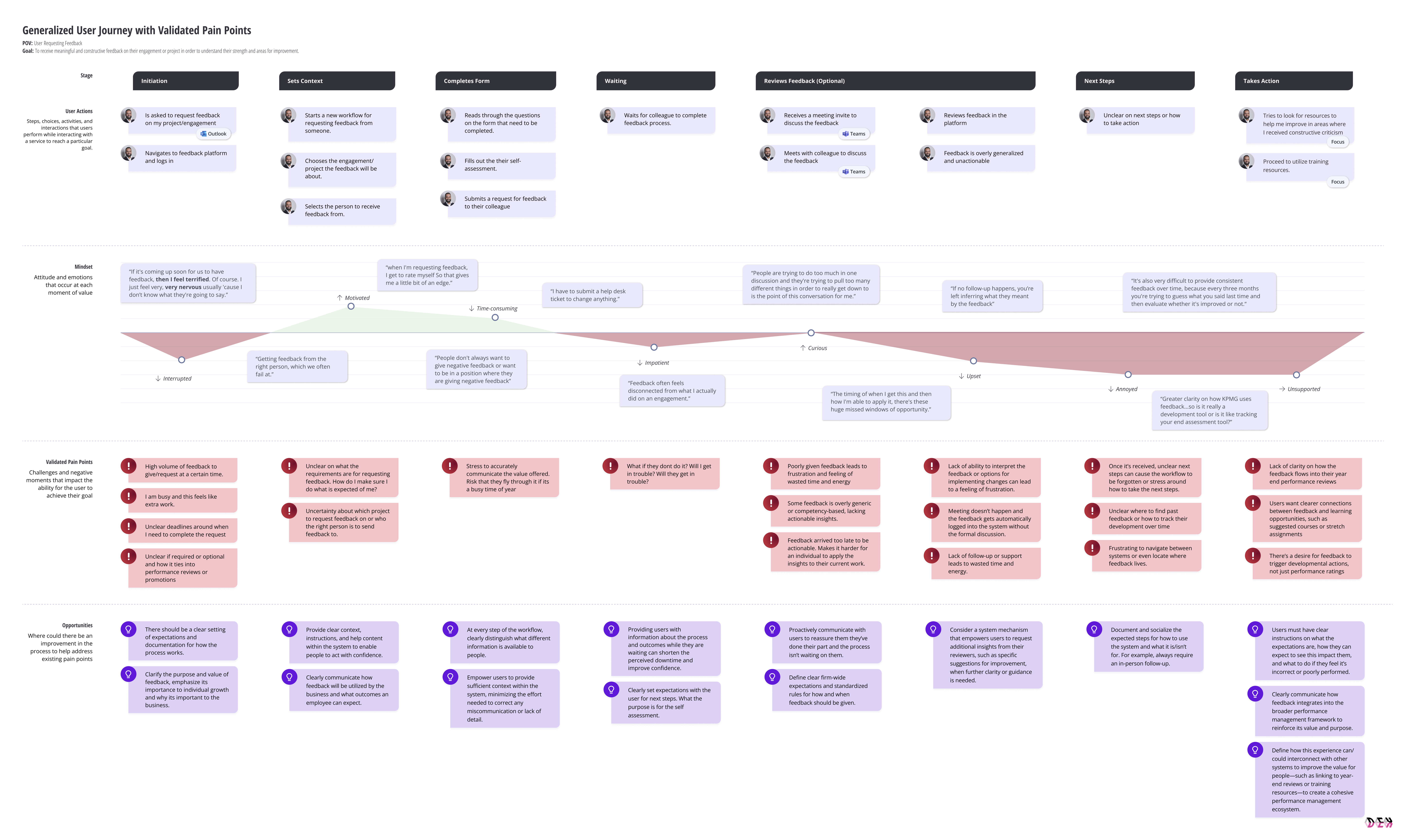 The process for employees to provide and request feedback, related to engagement work, was cumbersome and disconnected from the mental model of the employees using it. People felt confused about how/why they would want to provide/request feedback and unable to articulate the effect it had on their career.